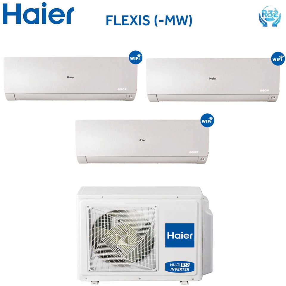 Haier Flexis White Series 7000 + 7000 + 12000 BTU เครื่องปรับอากาศแบบแยกส่วนพร้อม R-32 3U55S2SR2FA Wi-Fi 7 + 7 + 12ใหม่