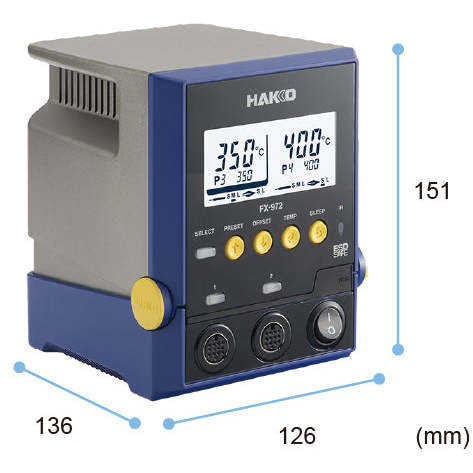 สถานีบัดกรีดิจิตอล HAKKO FX-972 พร้อมช่วงอุณหภูมิ 500 องศาเซลเซียส หัวแร้งสำหรับงานหนัก กำลังไฟ 200 วัตต์ น้ำหนัก 2.8 กิโลกรัม