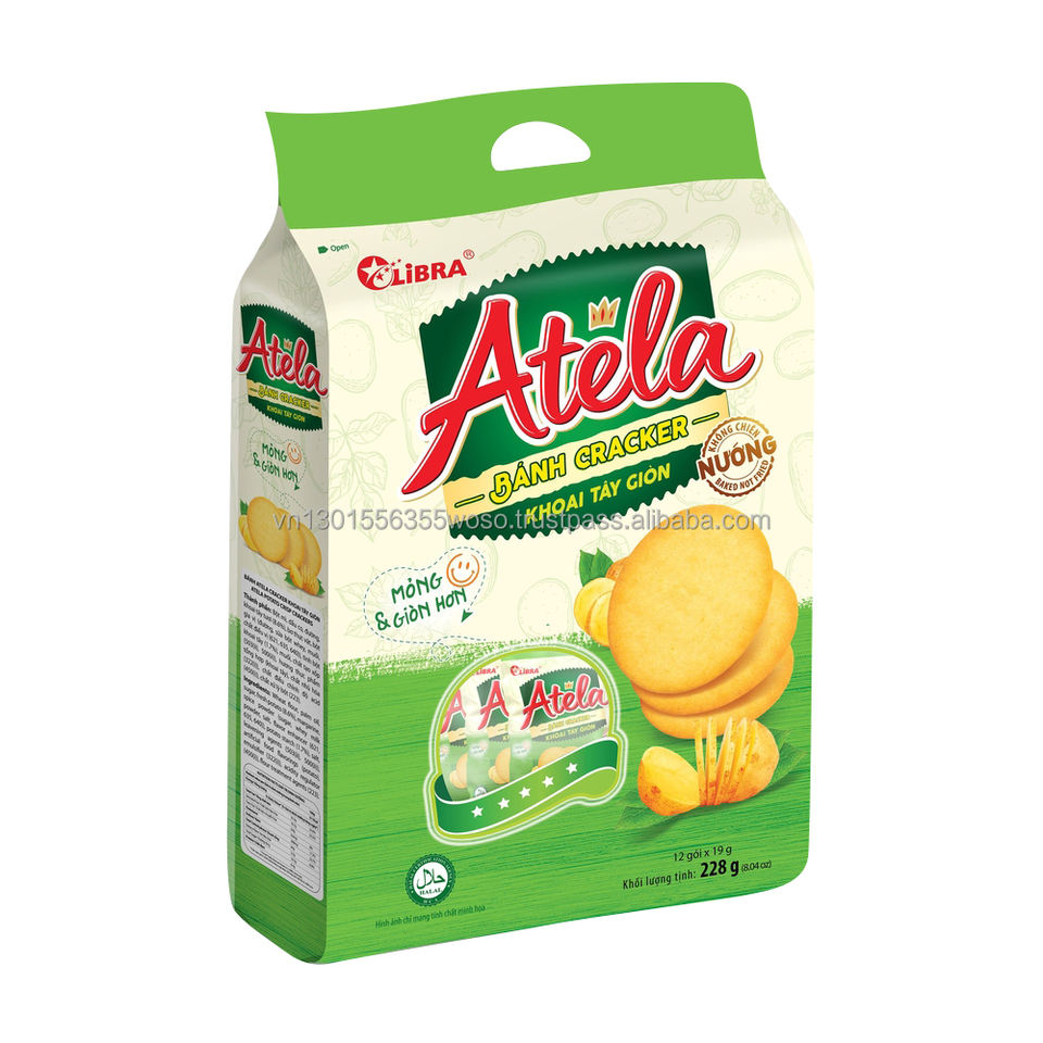 Halal atela แครกเกอร์มันฝรั่งกรอบ228กรัมบรรจุซองไขมันต่ำรสเค็มและหวานผลิตภัณฑ์ FMCG จากบิสกิตเวียดนาม