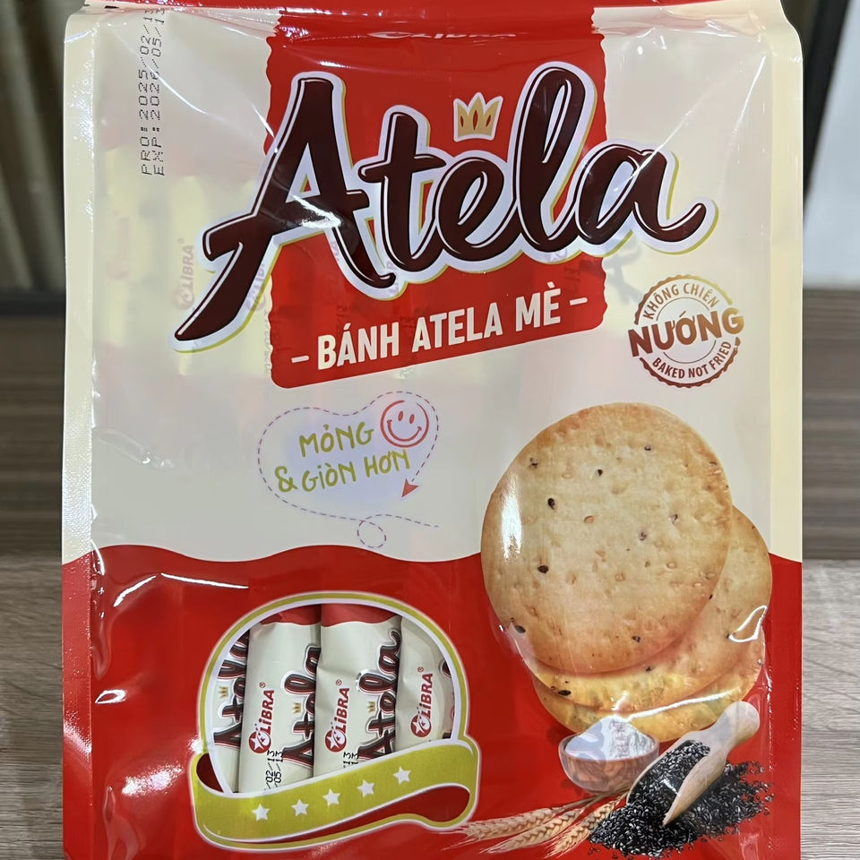 Halal atela 228กรัมขนมงากะเทาะไขมันต่ำ FMCG สินค้าจากเวียดนามขนมที่แปลกใหม่รสชาติหวานราคาถูกประเภทบิสกิต