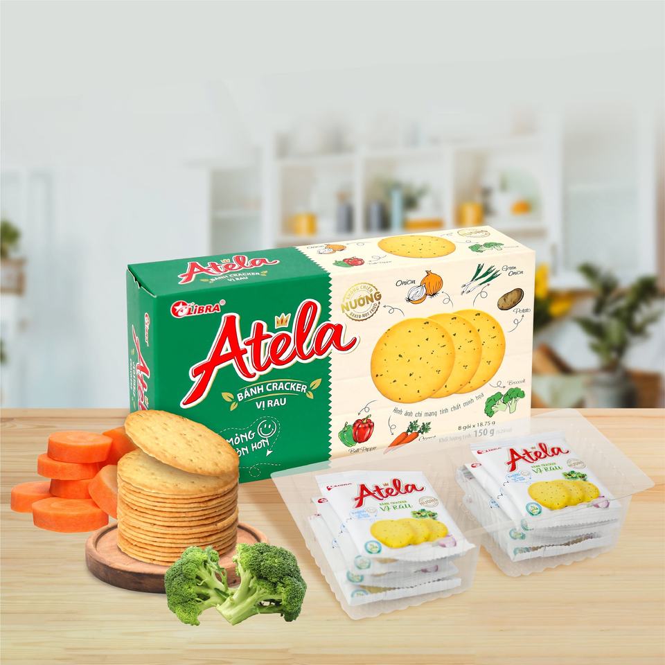 เครื่องกะเทาะผักกรอบฮาลาลาทีล่า150กรัมไขมันต่ำผลิตภัณฑ์ FMCG จากเวียดนามกล่องซองบิสกิตหวานรสเค็ม