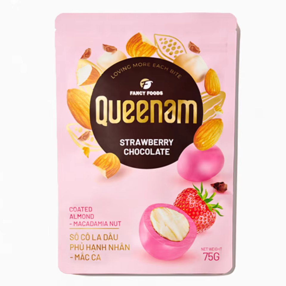 HALAL Customizable 75G Dragee Chocolate Snacks Wholesale Strawberry Chocolate Coated Almond Macadamia Nuts Good Price