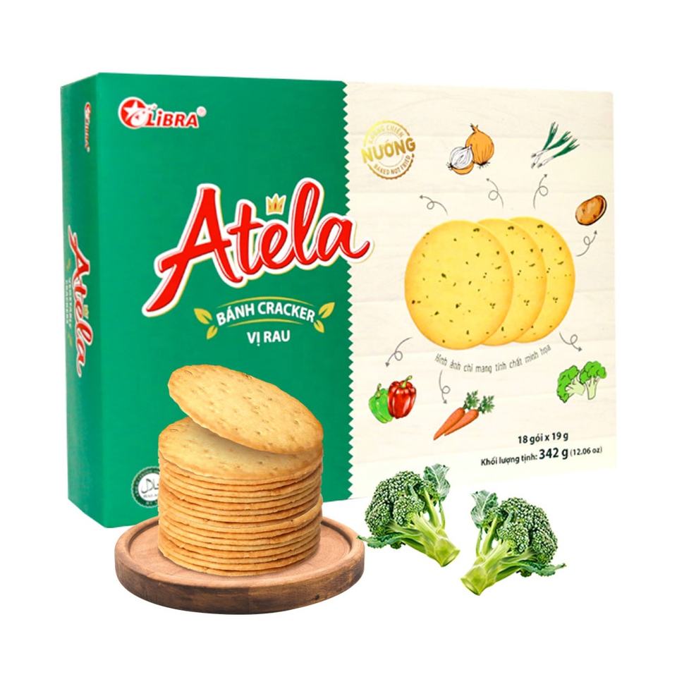 Halal ISO atela แครกเกอร์กรอบผักรสเค็ม342กรัมกล่องบรรจุถุงหอมรสชาดเวียดนาม FMCG ขนมแปลกใหม่