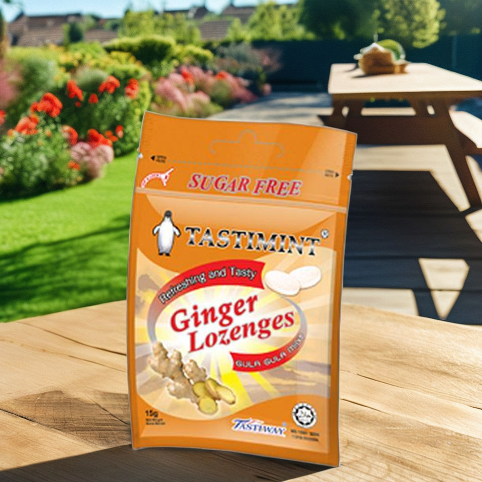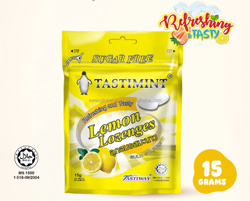 Halal Malaysia 15กรัม/แพ็คเก็ตไม่มีน้ำตาล tastimint ขิงลูกอม lozenges รสมิ้นท์สดชื่นซิปล็อค