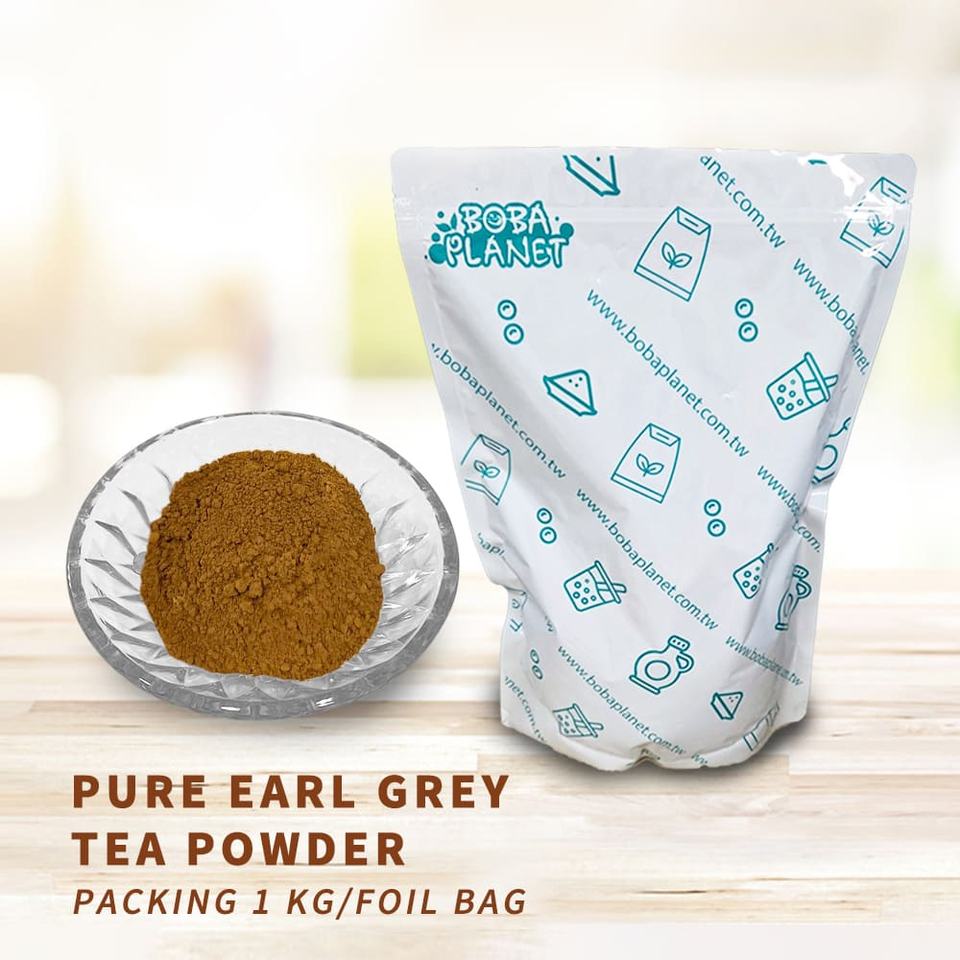 ชาเอิร์ลเกรย์สำเร็จรูปแบบผงยี่ห้อ Boba Planet ได้รับการรับรองฮาลาล SC 22000 บรรจุในถุงจากไต้หวัน อายุการเก็บรักษา 2 ปี เหมาะสำหรับทำสมูทตี้