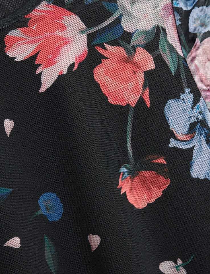 เสื้อครึ่งแขนทรงหลวมพิมพ์ลายฤดูร้อนเป็นมิตรกับสิ่งแวดล้อมสีดำสำหรับผู้หญิง