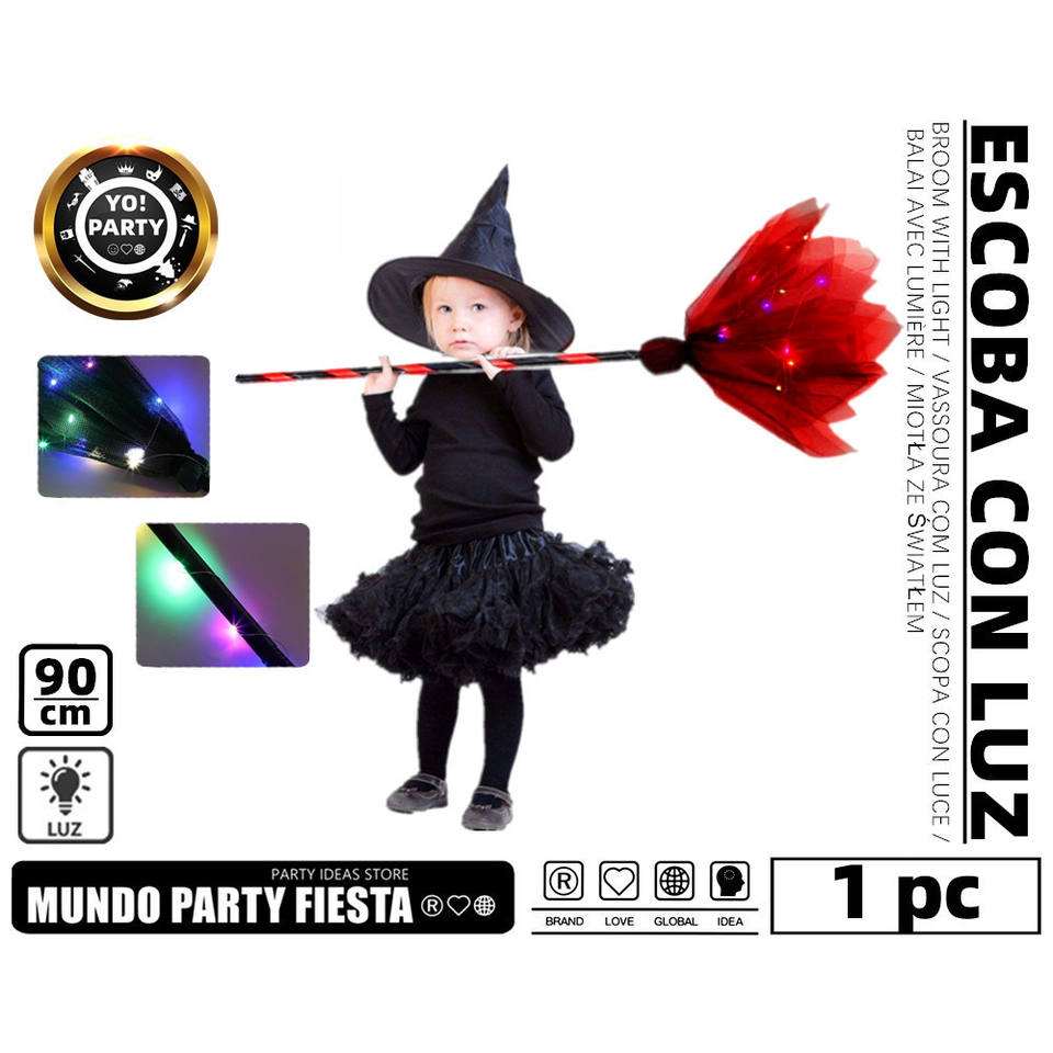 HALLOWEEN WITCH BROOM 90CM BLACK & RED LIGHT-UP TULLE COSTUME PROP Party Masks #50195