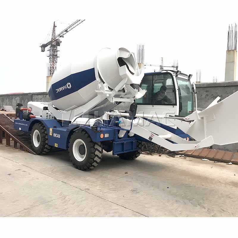 รถผสมคอนกรีตขนาดเล็ก HAMAC 3.5 คิวบิก แบบยกเทเองได้ หมุนได้ 270 องศา พร้อมเครื่องยนต์ Yuchai 4105 สำหรับโครงการทางหลวง ขาย