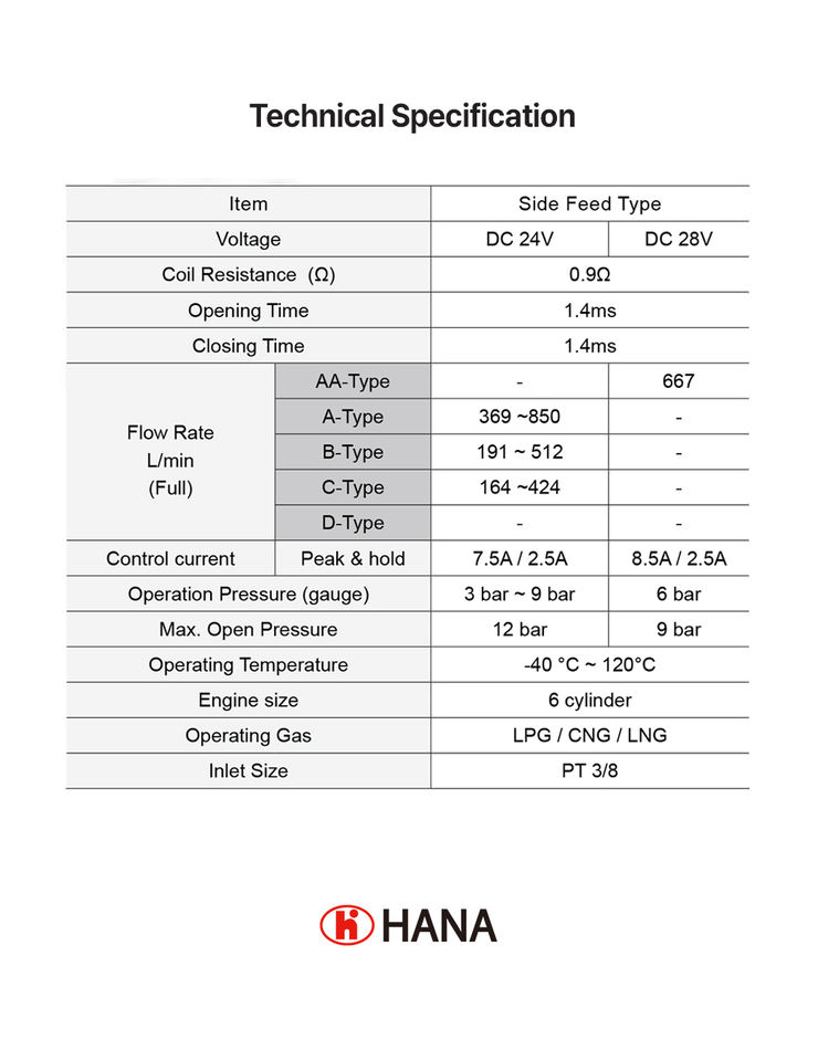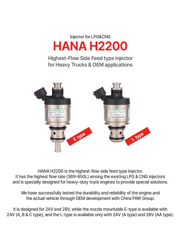 HANA H2200 High Performance ISO 15500 CNG/LPG Injector Nozzle DC 12V -40~120 New Made in Korea