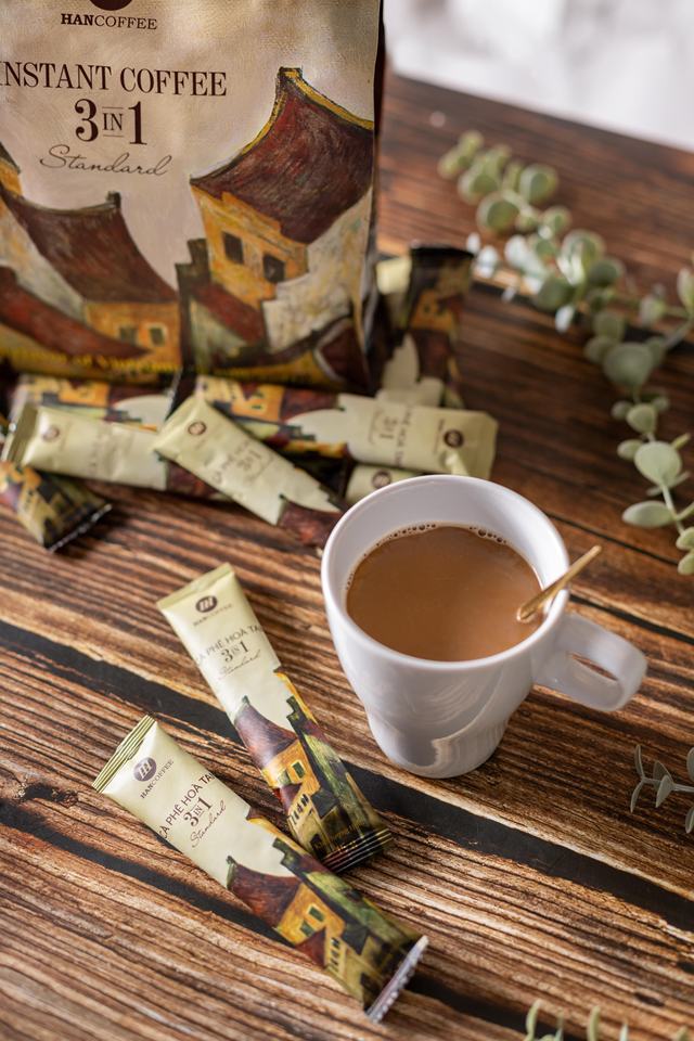 กาแฟสำเร็จรูปฮันคอฟฟี่ ODM/OEM 3-in-1 รสโรบัสต้า อาราบิก้า ผสมถั่ว ช็อกโกแลต ผลไม้ น้ำตาล นม 288 กรัม/กล่อง จากเวียดนาม