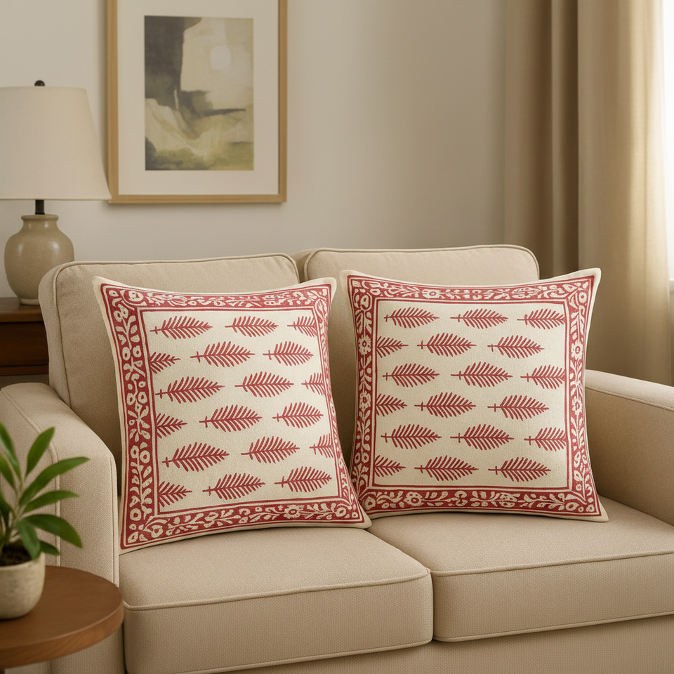 ชุดปลอกหมอนอิงทอมือพิมพ์ลายด้วยเทคนิคแฮนด์บล็อก