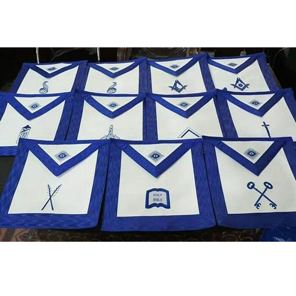 ผ้ากันเปื้อนมาตรอนลายปักด้วยมือช่างก่ออิฐสีฟ้าสำหรับผู้มีพระคุณคุณภาพระดับต้น