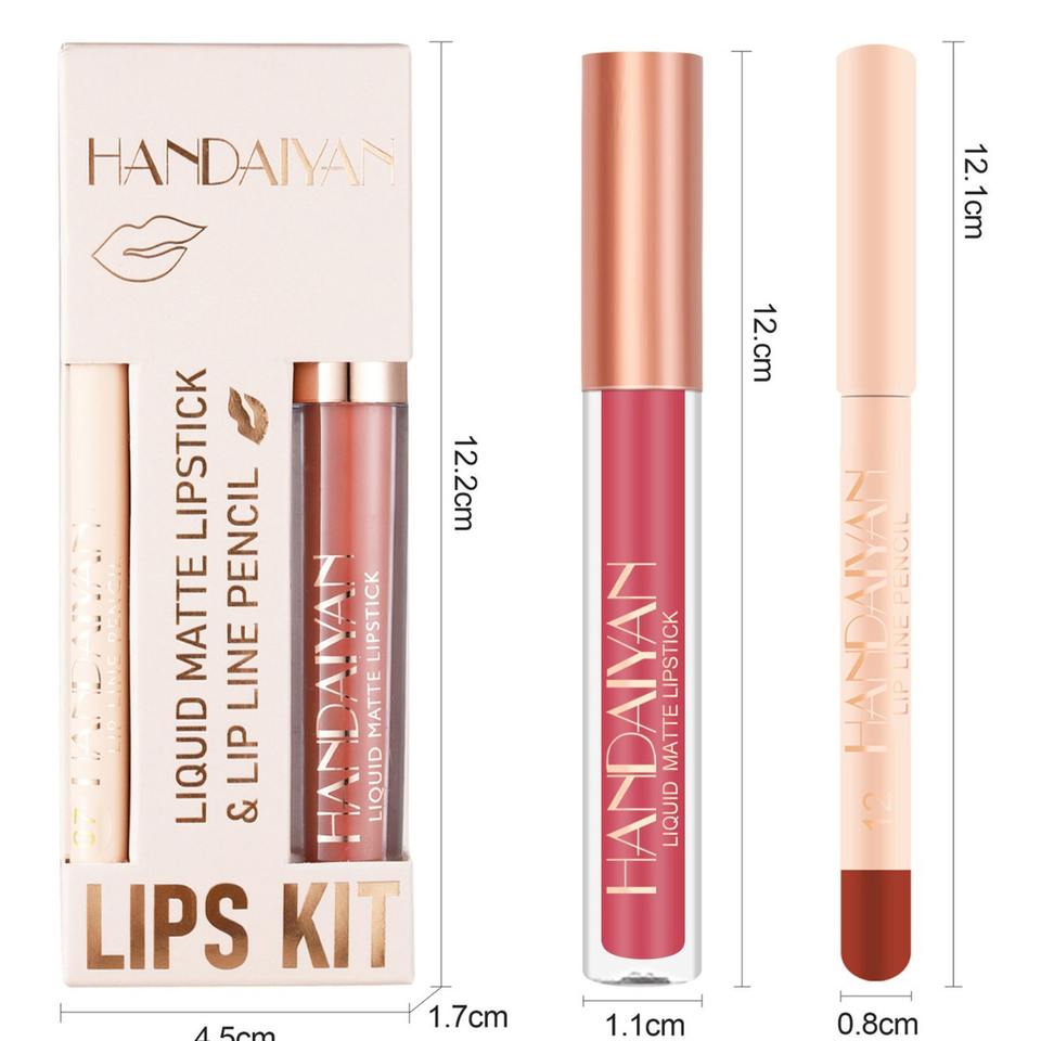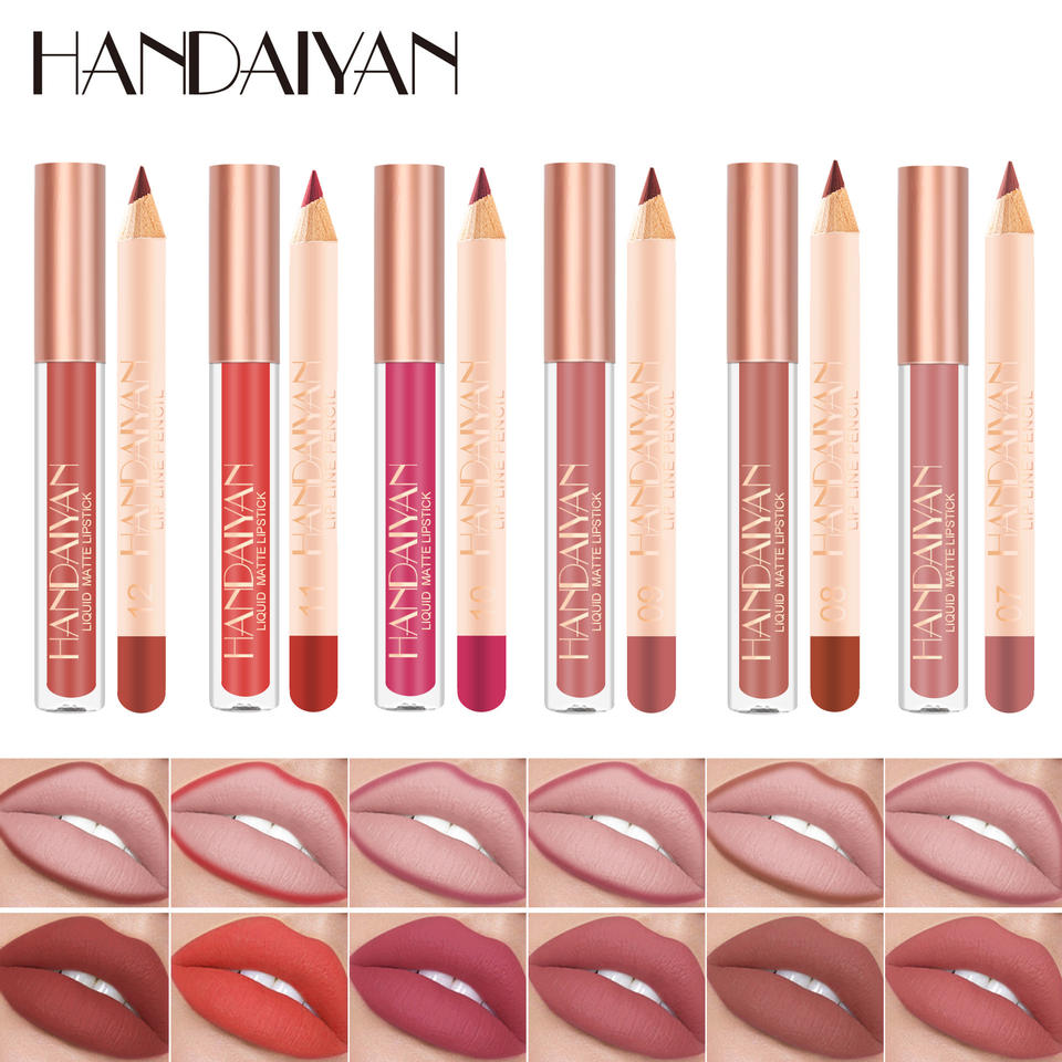ชุดลิปสติกเนื้อลิควิด 12 สี HANDAIYAN พร้อมดินสอเขียนขอบปาก จัดส่งฟรี เครื่องสำอางเกาหลีสำหรับผู้หญิง ลิปสติกเพื่อความงาม