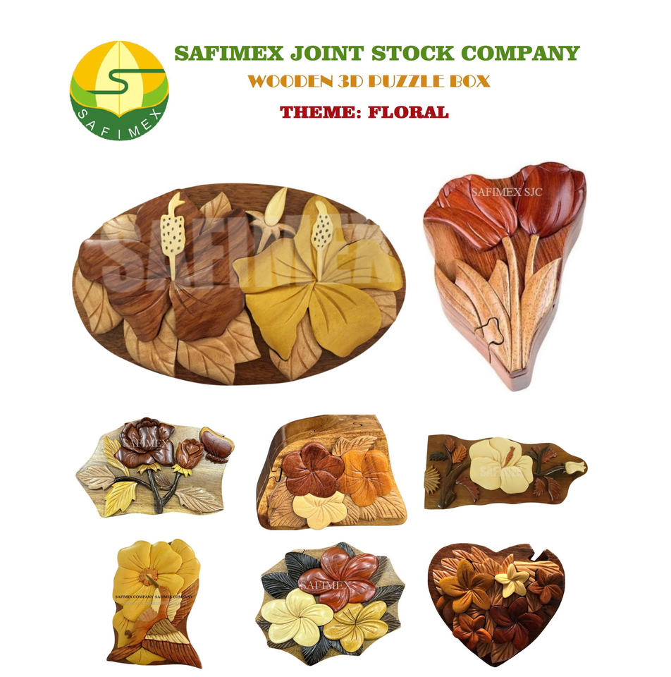 กล่องไม้ฝังลายแกะสลักด้วยมือสำหรับเก็บเครื่องประดับ งานฝีมือไม้ กล่องลับ 3 มิติ จากโรงงานงานฝีมือไม้ของเวียดนาม ของที่ระลึก