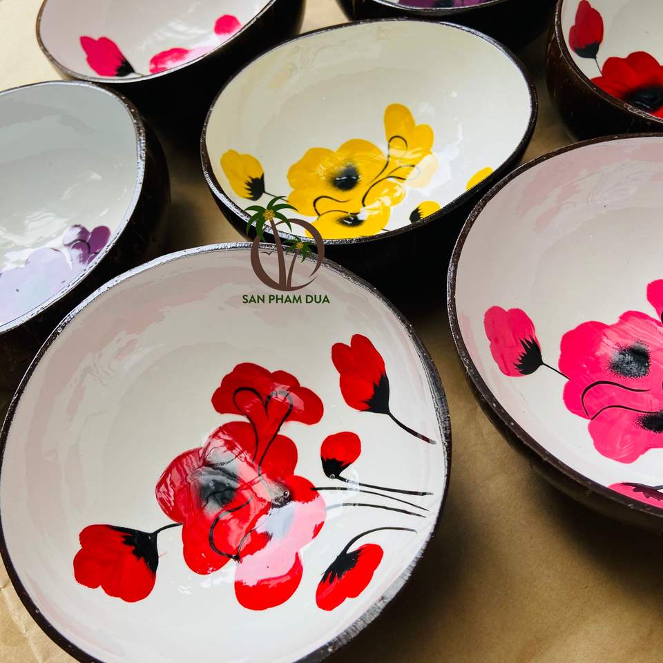 ชามเคลือบสีงานฝีมือจากกะลามะพร้าวผลิตในเวียดนามชามเคลือบในราคาที่ถูกมาก