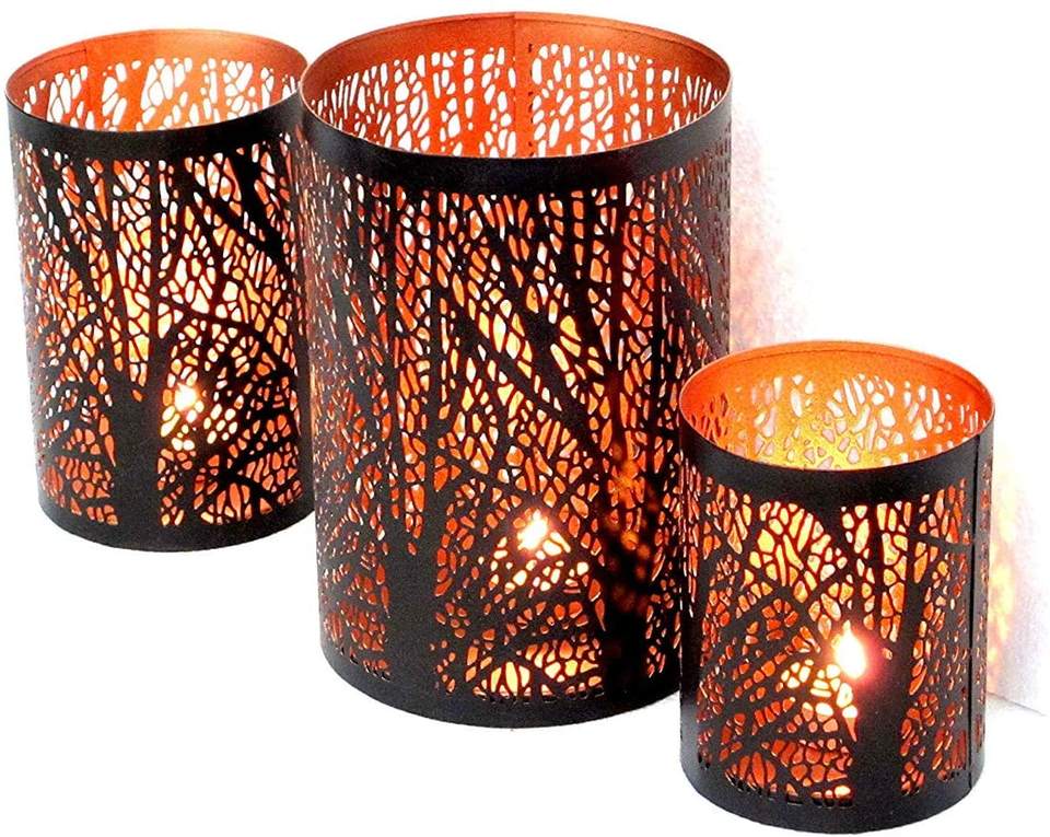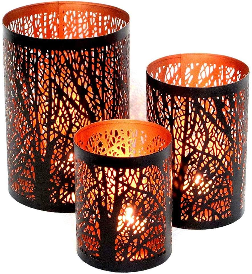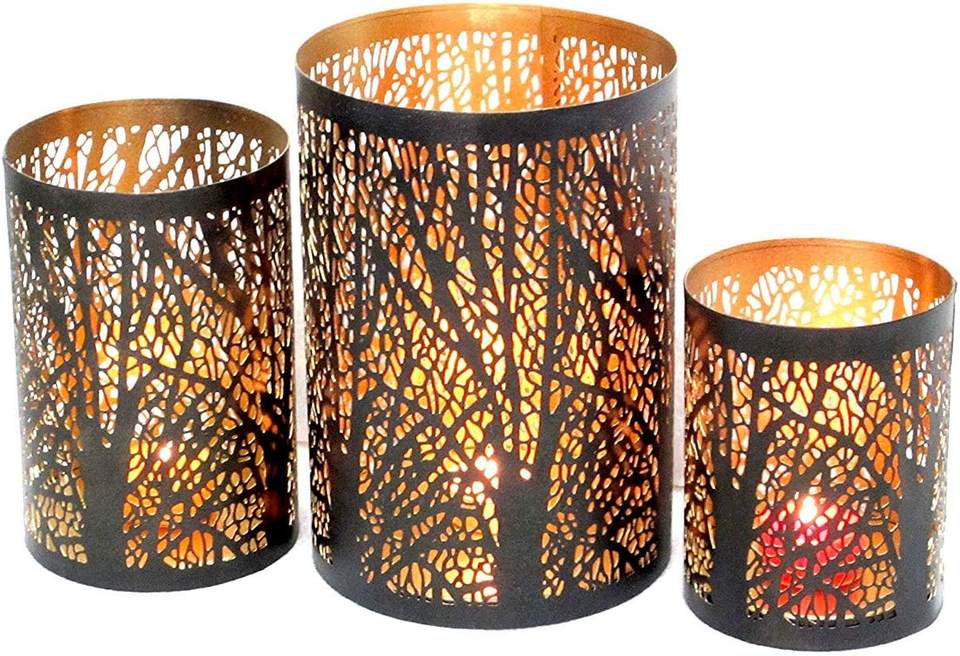 ชุดเชิงเทียนรูปดอกไม้ตกแต่งงานฝีมือ 3 ชิ้น (สีดำและสีทอง) ทำจากเหล็ก สำหรับตกแต่งบ้านในเทศกาลอีสเตอร์ โดย KSN