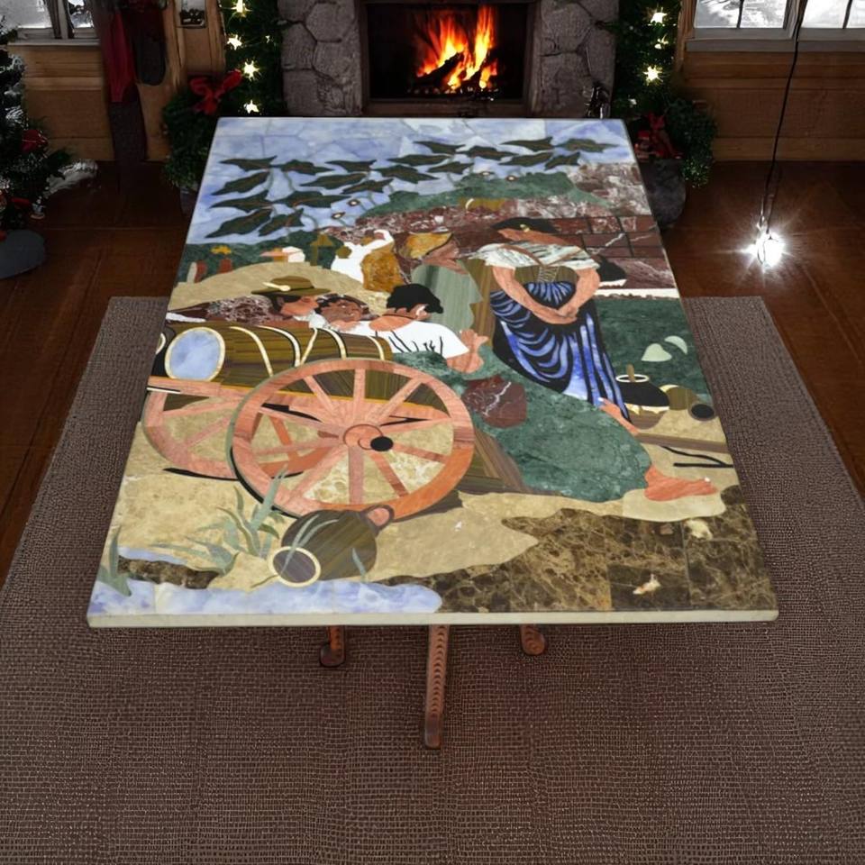 งานฝีมือในงานศิลปะสมัยใหม่ งานฝังประณีต งานทำมือ โต๊ะหินอ่อนทรงสี่เหลี่ยมผืนผ้าเลียนแบบโบราณ หินขัดเงา ของตกแต่งบ้าน