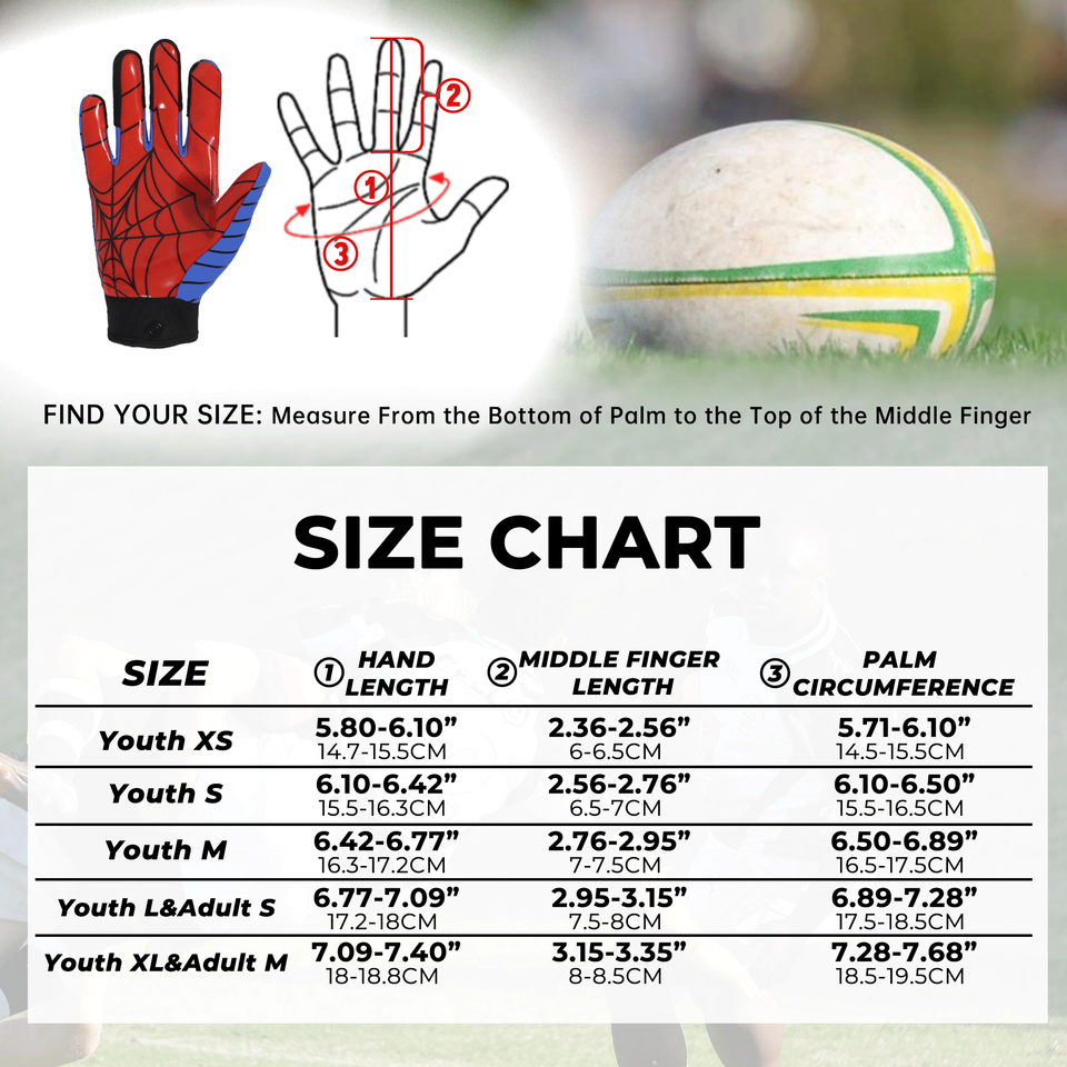 Handlandy ถุงมือรักบี้ดีไซน์คลาสสิกสำหรับเยาวชนถุงมือสไปเดอร์ซิลค์ถุงมืออเมริกันฟุตบอล