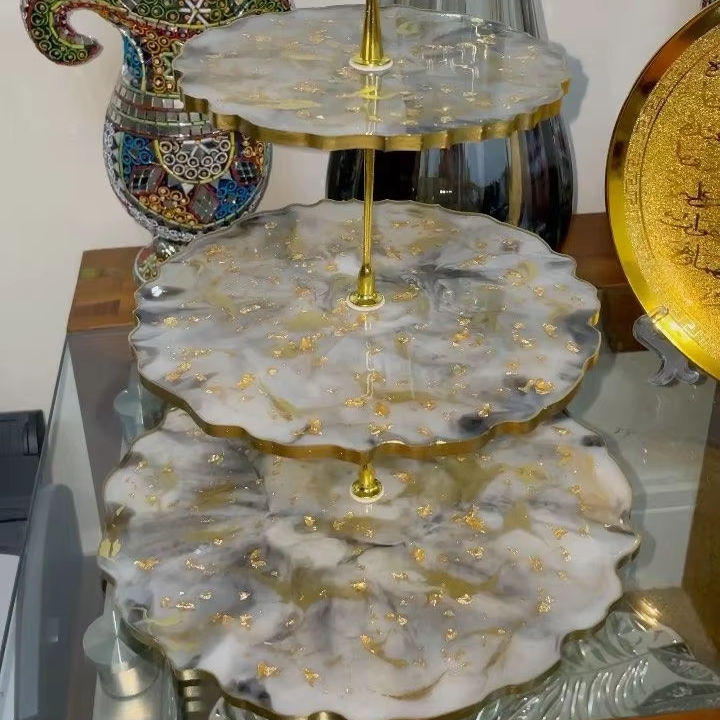 ที่วางเค้กเรซินลาวาออกแบบทำด้วยมือสำหรับงานแต่งงานและวันเกิด