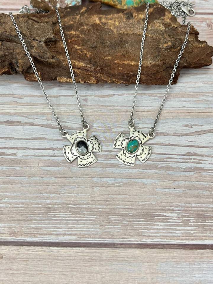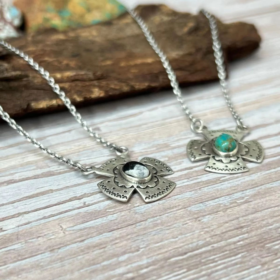 สร้อยคอเงินแท้ชุบโรเดียมทำมือ ประดับด้วยจี้คิงแมนเทอร์ควอยซ์และไวท์บัฟฟาโล
