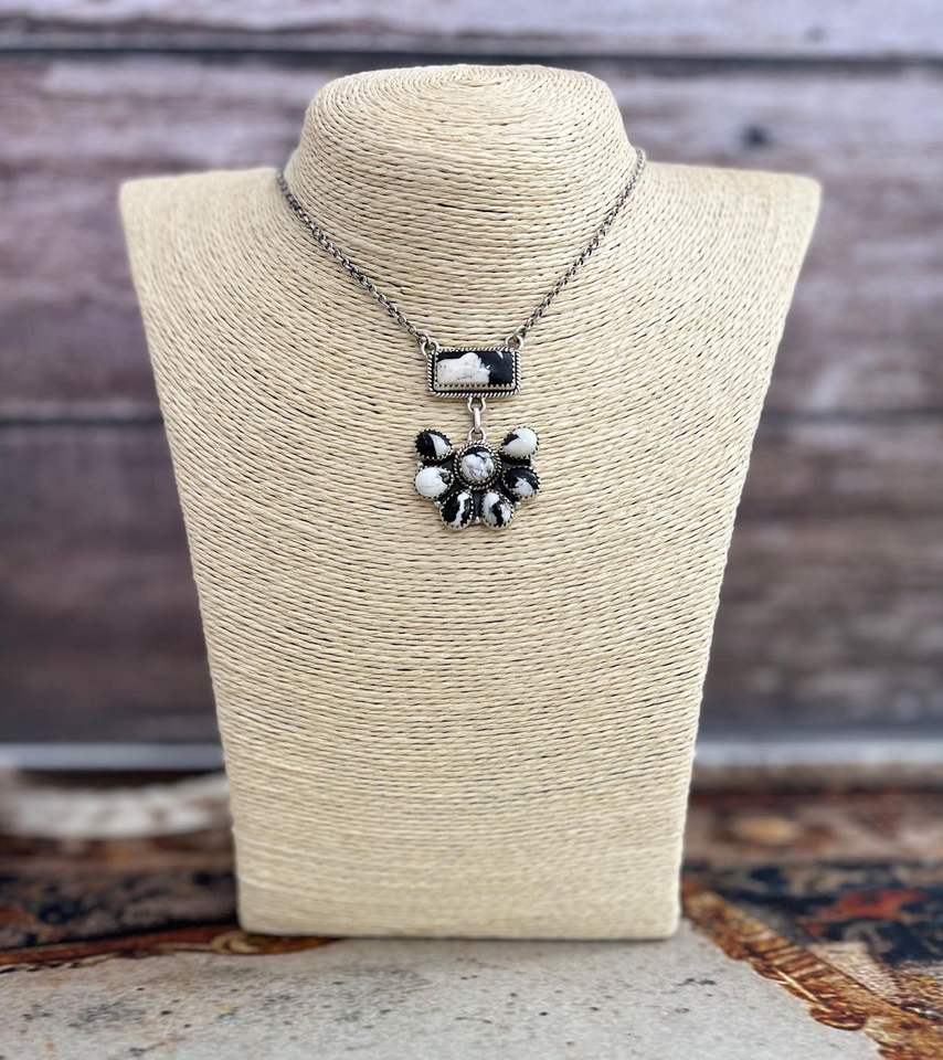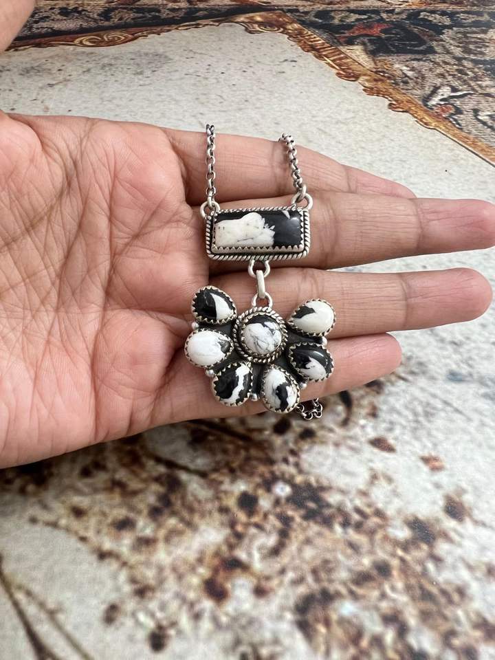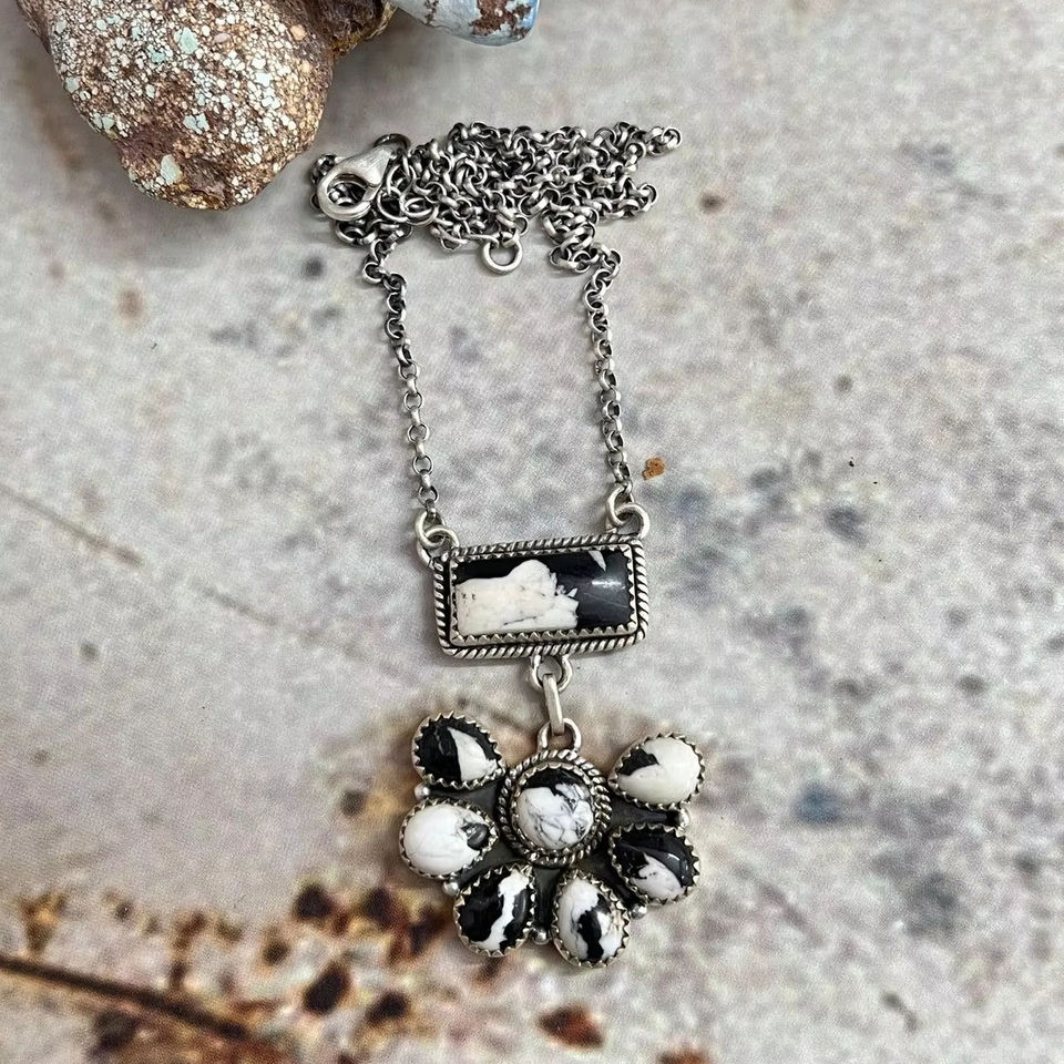 สร้อยคอเงินแท้ชุบทองประดับหินบัฟฟาโลสีขาวแบบฝังขอบ