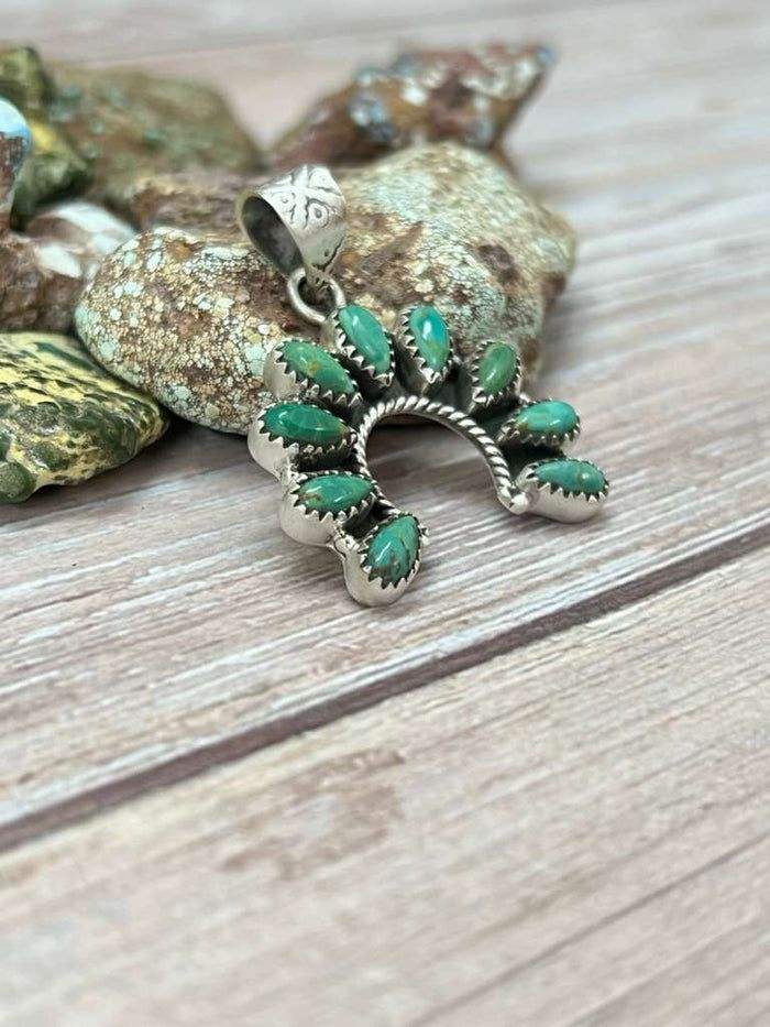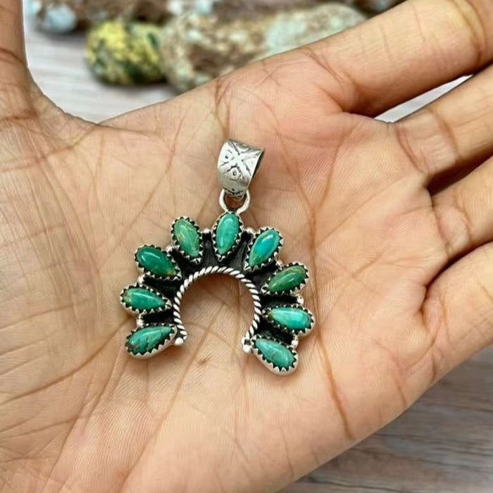 จี้เงินแท้ทำมือประดับด้วยพลอยคิงแมนเทอร์ควอยซ์รูปงูนาจาสำหรับผู้หญิง