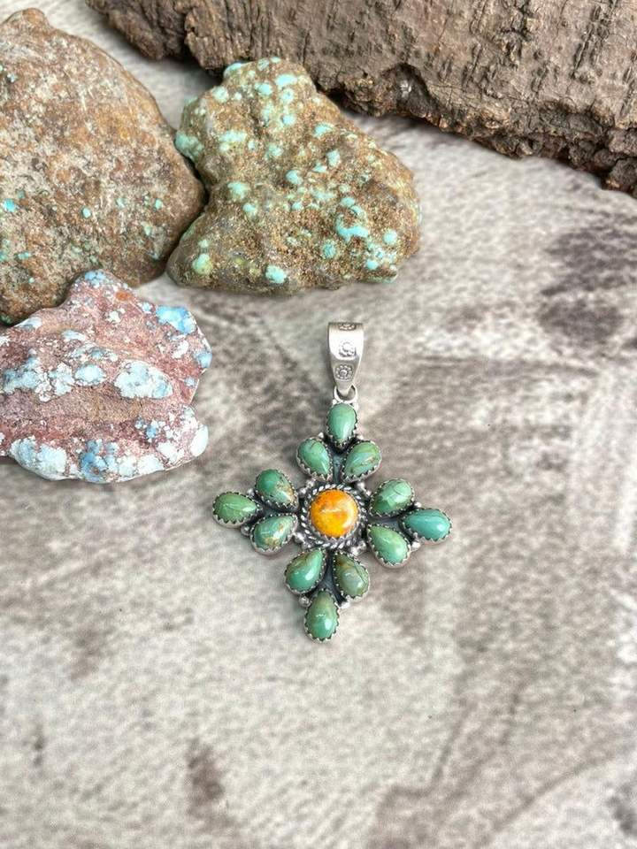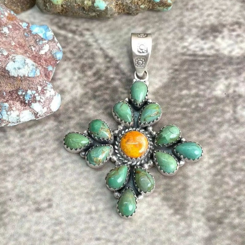 จี้เงินแท้ทำมือประดับด้วยพลอยคิงแมนเทอร์ควอยซ์รูปผึ้ง