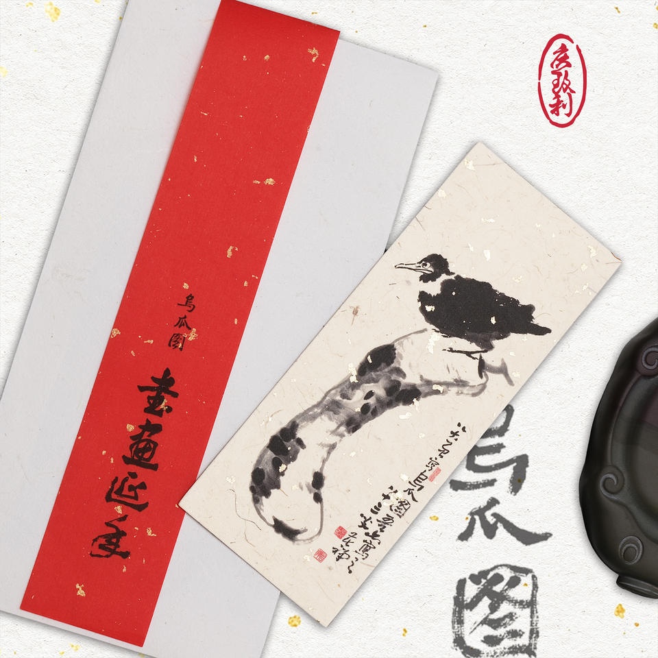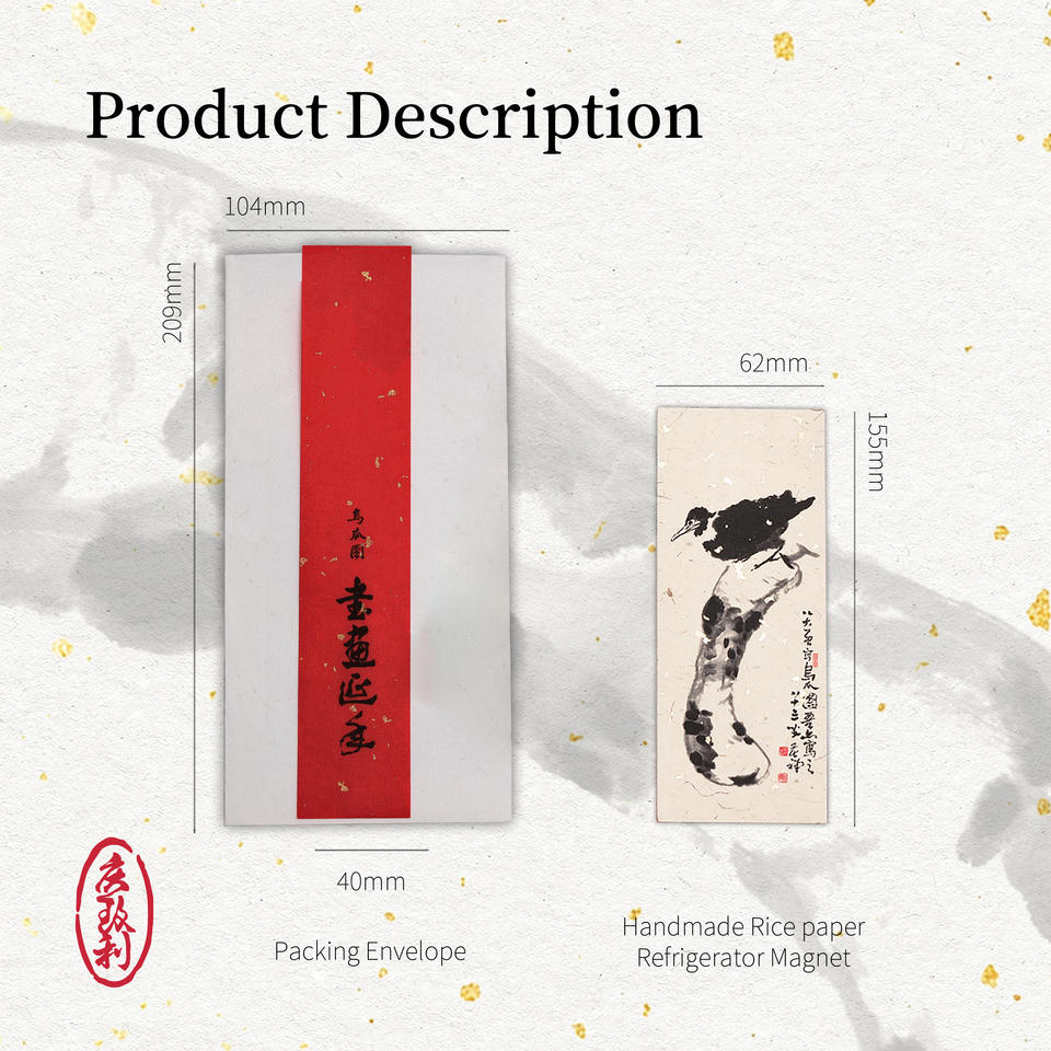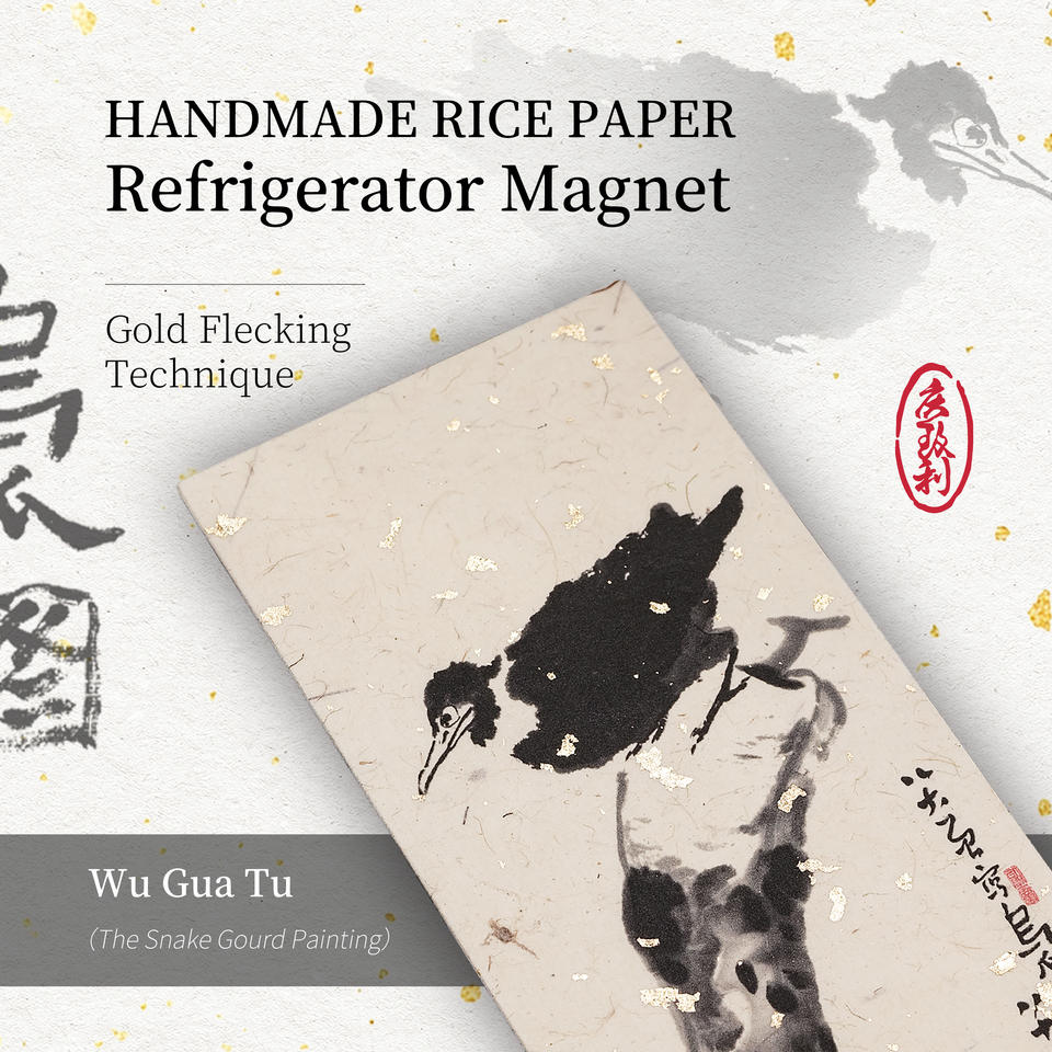 แม่เหล็กติดตู้เย็นทำมือจากกระดาษซวน ลายอู๋กัวถู ภาพวาดมะระงู