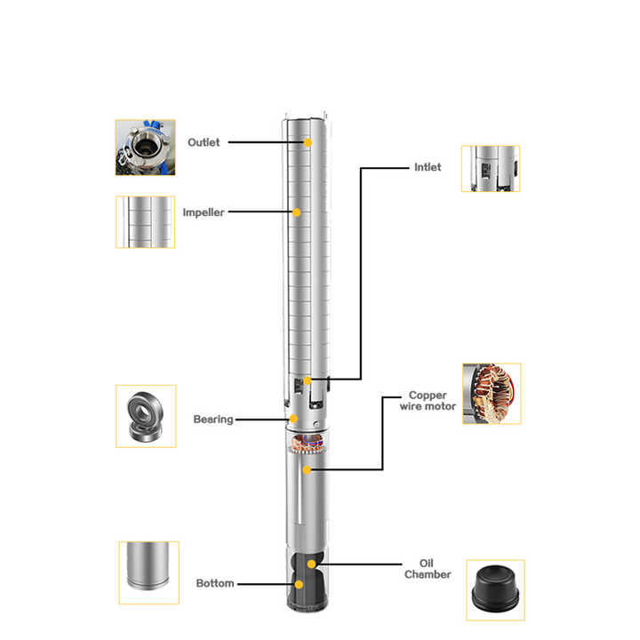 ปั๊มจุ่มใต้น้ำแบบหลายใบพัดแรงดันสูง HANGGE 4SP14 แบบติดตั้งแนวตั้ง ระยะส่ง 600 เมตร ใช้งานได้ 24 ชั่วโมง พร้อมเพลาแบบยืดหยุ่น