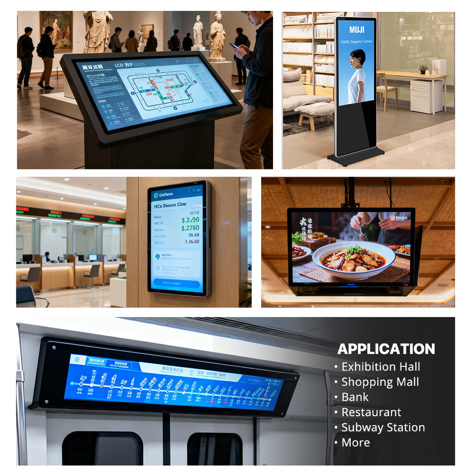 โฆษณาวันที่, จอแสดงผลจาน, สนามบิน, การศึกษา, ลิฟท์, Exhibition Hall, Medical Treatment, Restaurant & Hotel Supplies, ร้านค้าปลีก, Self-Serviceธุรกิจ, Shopping Mall, สถานีรถไฟใต้ดิน, Wayfinding, ยินดีต้อนรับจอแสดงผล