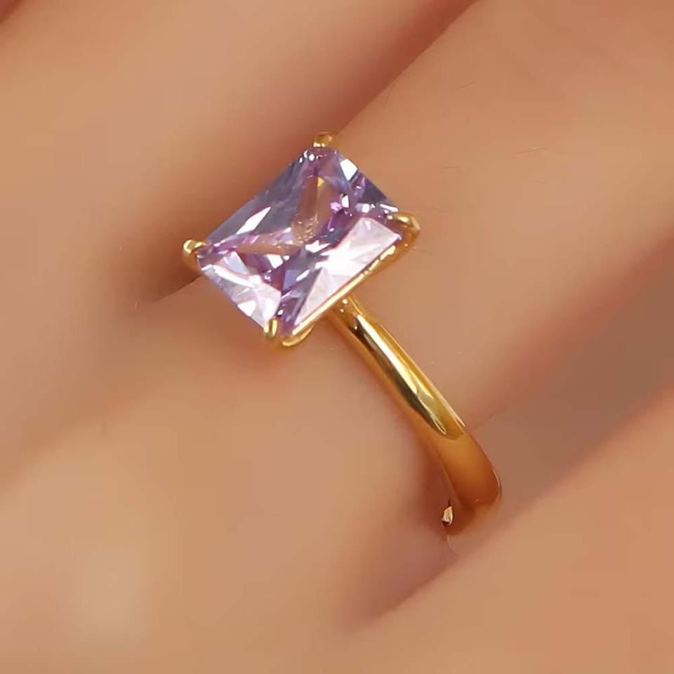 Hari OM Creations แหวนเงินแท้วินเทจได้รับการรับรอง IGI ทรงสี่เหลี่ยมผืนผ้า925พลอยผมทัวร์มาลีนสีชมพู