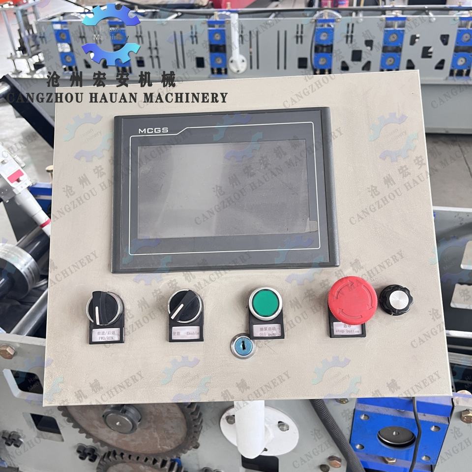 เครื่องขึ้นรูปและเชื่อมคานชั้นวางแบบป้อนอัตโนมัติ HAUAN พร้อมมอเตอร์เกียร์ PLC และลูกปืน-38.5 กิโลวัตต์ 380 โวลต์ ใช้งานง่าย