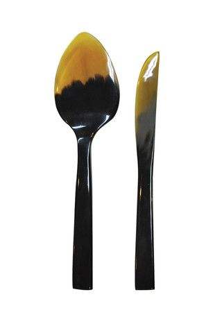 มีเครื่องใช้บนโต๊ะอาหารสไตล์สัตว์ที่ไม่เหมือนใครช้อนเขาวัวควายขัดเงาธรรมชาติสำหรับตกแต่งโต๊ะในร้านอาหาร