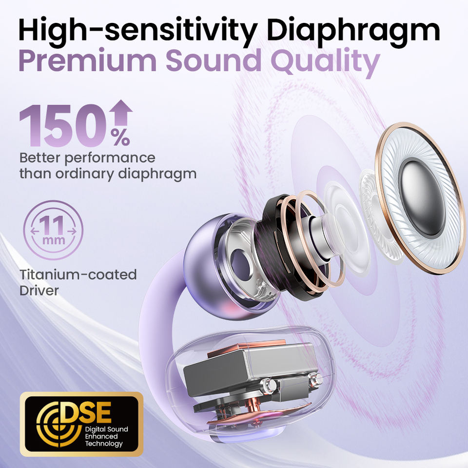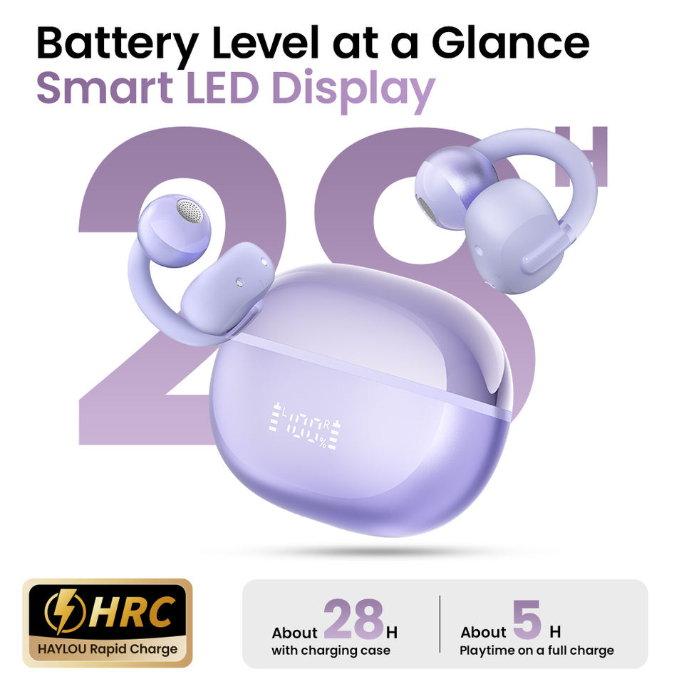 หูฟังไร้สายแบบหนีบหู HAYLOU OW03 พร้อมหน้าจอดิจิตอล สำหรับตัดเสียงรบกวน ENC 5.4 และเวลาเล่นยาวนานกว่า 20 ชั่วโมง