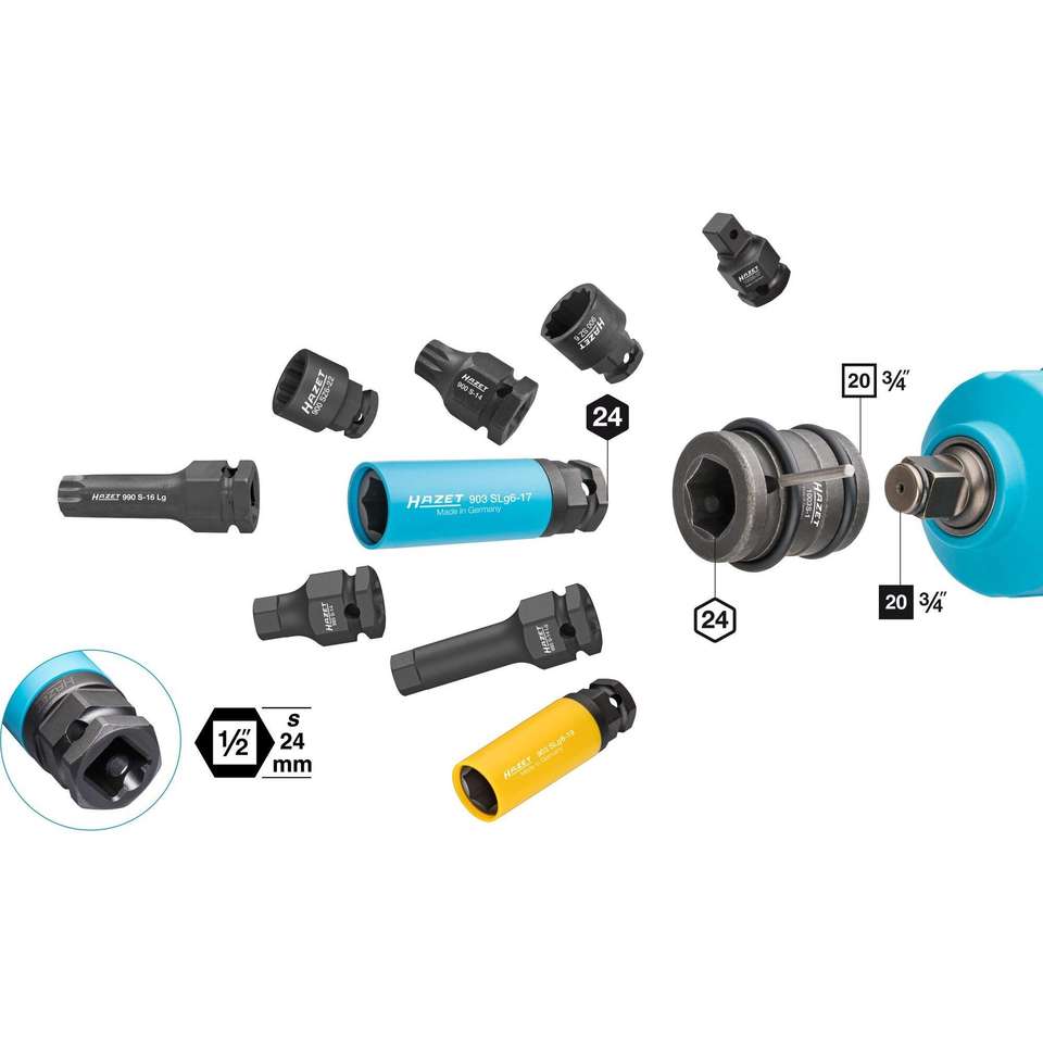 ชุดไขควงกระแทกสีน้ำตาลแดง990S-12/2ออกซิเดชั่น3/4นิ้ว (20มม.), กลวง, สี่เหลี่ยม1/2นิ้ว (12.5มม.), กลวง, 24มม. ภายนอก