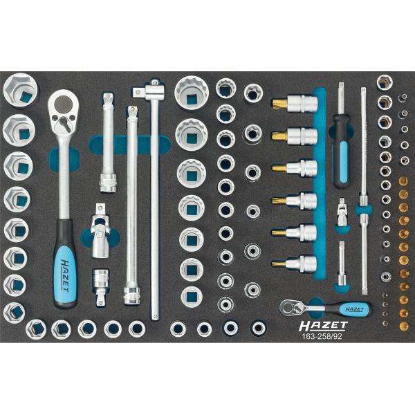 Hazet-163-ชุด258/92พร้อมวงล้อซ็อกเก็ตและอุปกรณ์เสริม1/2 ''และ1/4'' (92ชิ้น) -EAN 4000896179299ชุดเครื่องมืออื่นๆ