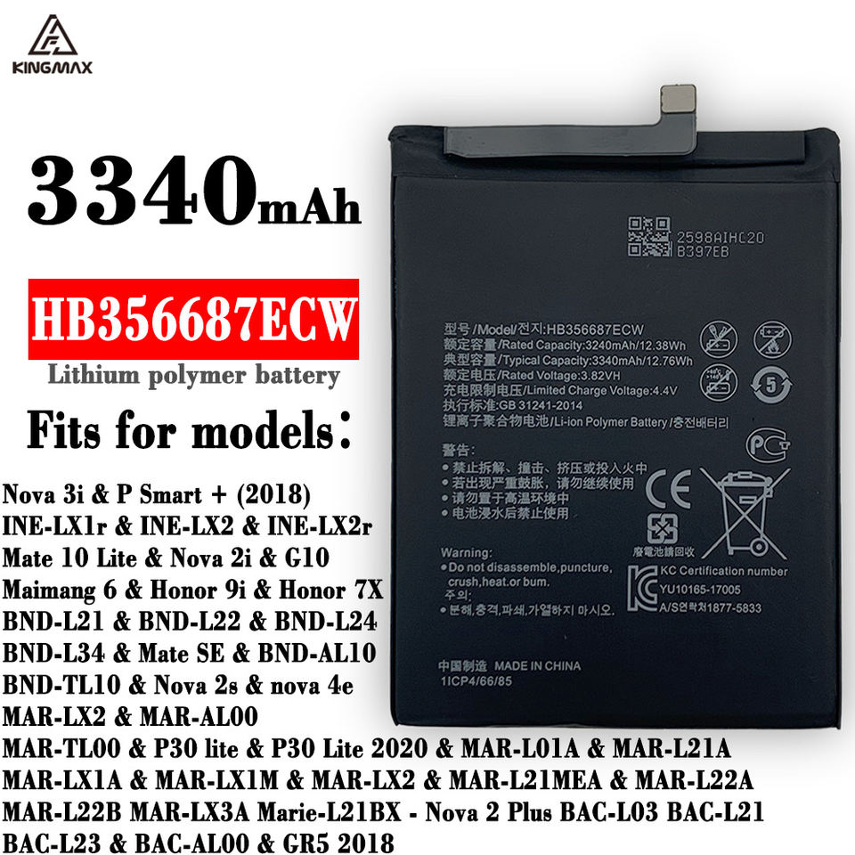 Model:Huawei Nova 2 Plus HB356687ECW Battery