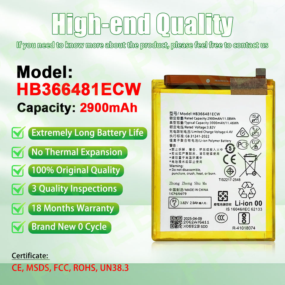 HB366481ECW แบตเตอรี่มาตรฐาน3.82V 2900mAh สำหรับ Huawei P8 2017 P20 Lite โทรศัพท์มือถือมีแบตเตอรี่ในตัวรับประกัน18เดือน