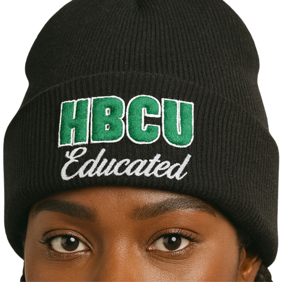 HBCU Educated Black Beanie Hat Acrylic Cap Chenille Embroidery Greek Sorority Divine Nine Custom Logo Headwear