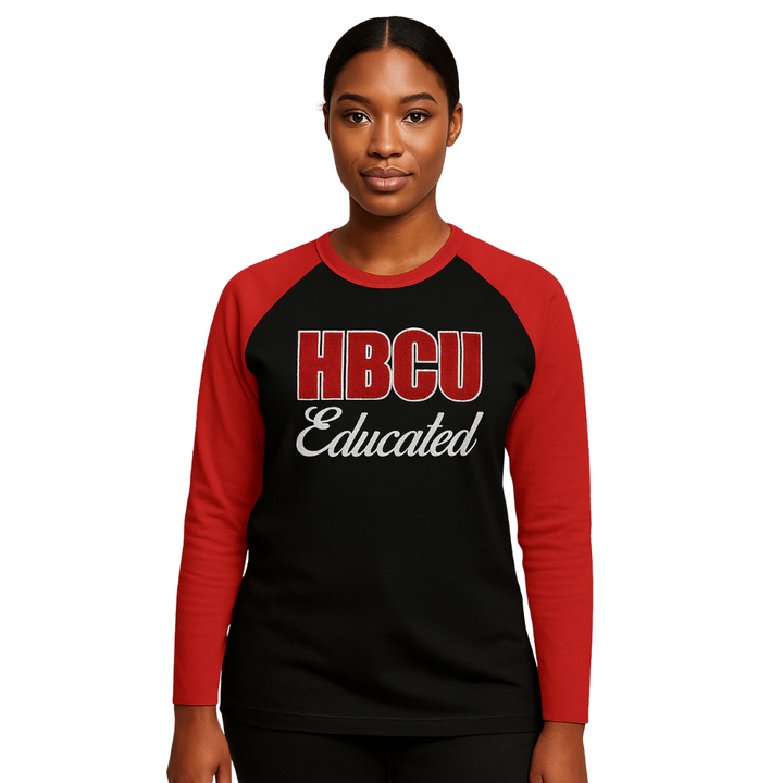Hbcu เสื้อยืดแขนยาว DST Raglan การศึกษาสีดำผ้าฝ้าย chenille sorek sority Delta Divine Nine Fashion