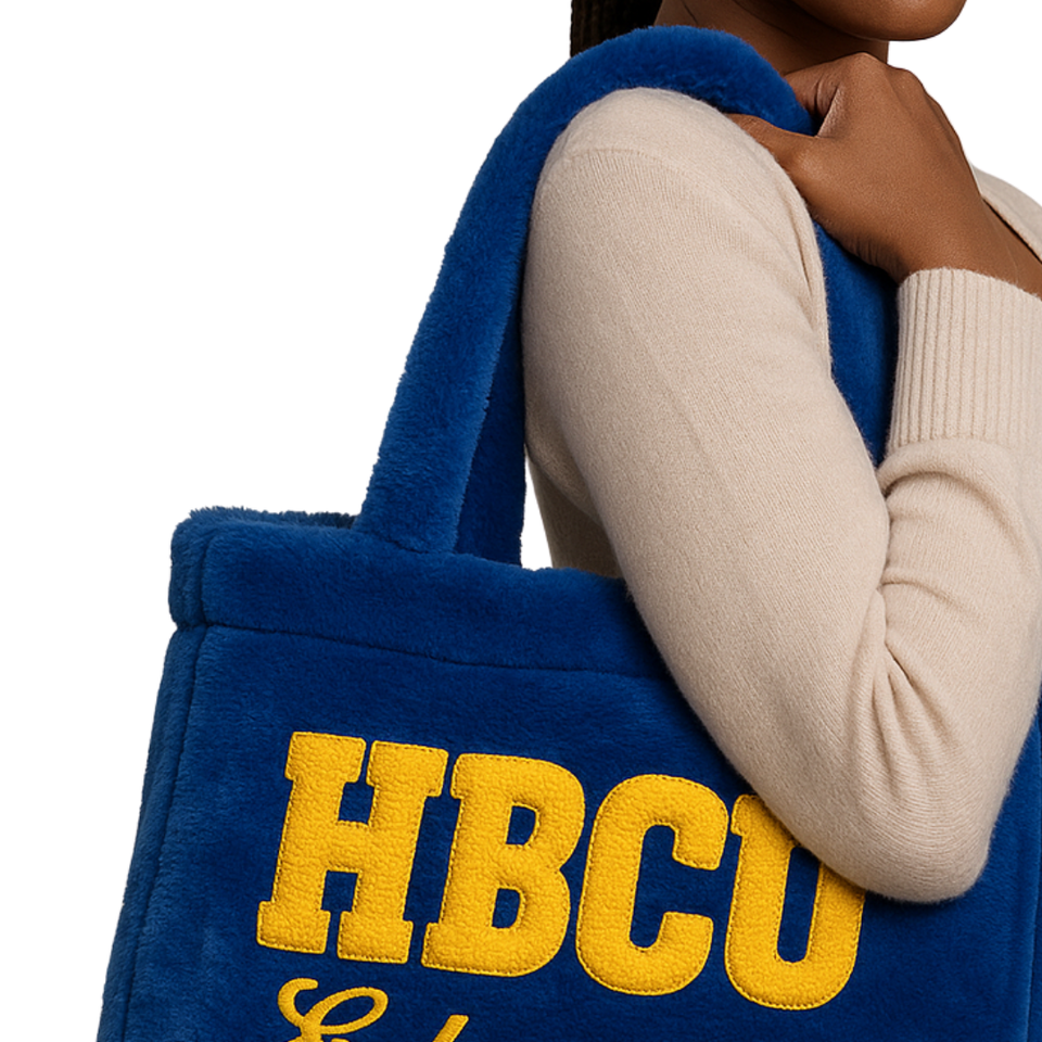 Hbcu กระเป๋าโท้ทขนสัตว์ sgrho สีน้ำเงินมีลายปักกำมะหยี่กำมะหยี่สีกรีกของขวัญสำหรับชมรมออกแบบโลโก้ได้ตามต้องการกระเป๋าถือแฟชั่น