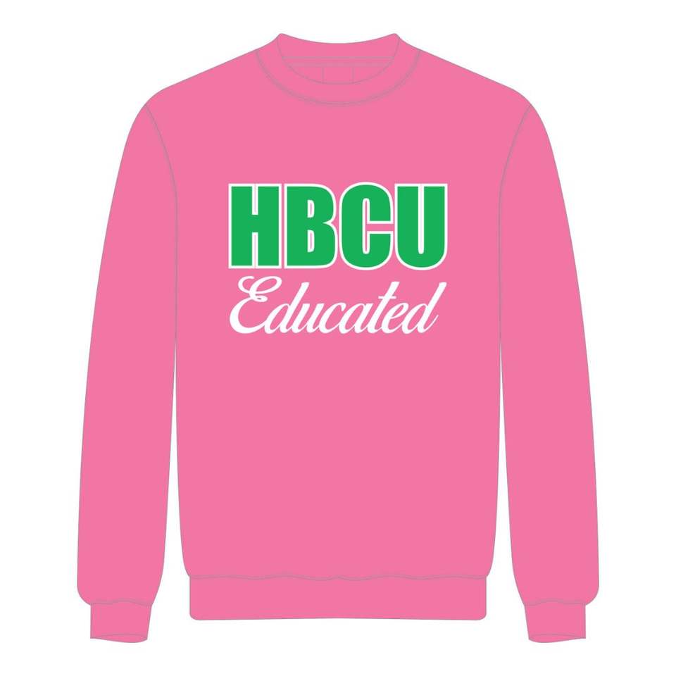 เสื้อสเวตเชิ้ตคอกลมสีชมพู ปักลายเชนิลล์ สำหรับชมรมนักศึกษาหญิง HBCU ลาย Divine Nine แฟชั่นนักศึกษา