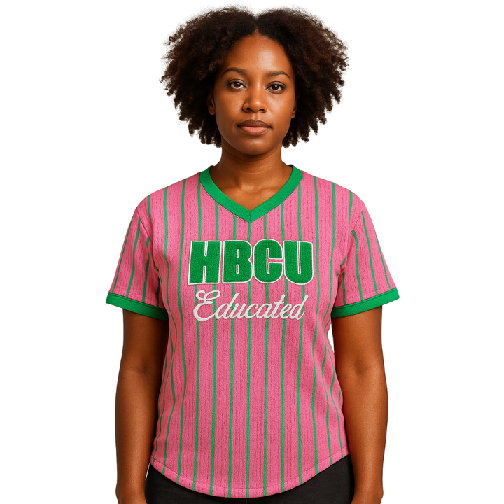Hbcu เสื้อกีฬาเบสบอลสวมหัวสีชมพูมีการศึกษาเสื้อยืดปักลาย chenille sority sority Divine