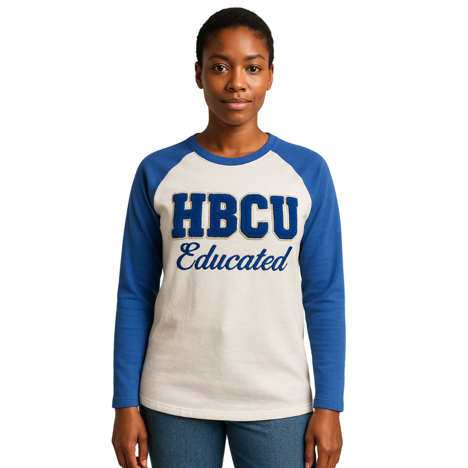 Hbcu เสื้อยืดแขนยาว Zeta Raglan สีขาวมีการศึกษาเสื้อยืดผ้าฝ้าย chenille Greek sorority Zeta phi Beta