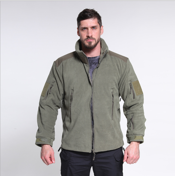เสื้อแจ็คเก็ตฟลีซผู้ชาย HBJ03 สีน้ำตาลทะเลทราย แบบทหาร พร้อมกระเป๋าหลายช่องและแถบติดตีปะสำหรับตราสัญลักษณ์