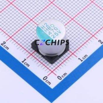 ตัวเก็บประจุแบบไฮบริดของเหลว-ของแข็งอะลูมิเนียมอิเล็กโทรไลต์ SMD รุ่น HBO471M1ETR-1010, ขนาด D10xL10 มม. 470uF 20% 25V 10 มม.