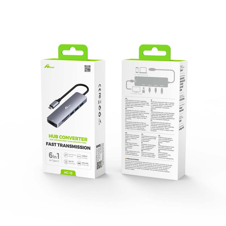 HC-13อะลูมิเนียม4พอร์ต10 in 1 5 in 1ชาร์จข้อมูลได้เร็ว USB2.0 * 2 USB3.0 * 1 SD/TF * 1 Type C สำหรับพอร์ต HDMI สำหรับพีซี