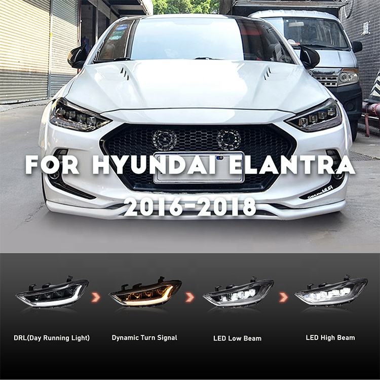ชุดไฟหน้า LED HCMOTIONZ พร้อมไฟ DRL แบบเคลื่อนไหวได้ สำหรับรถยนต์ Hyundai Elantra ปี 2016-2018