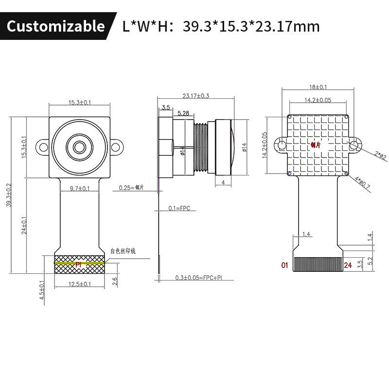 ขนาด:39.3*15.3*23.2mm (กำหนดเอง)