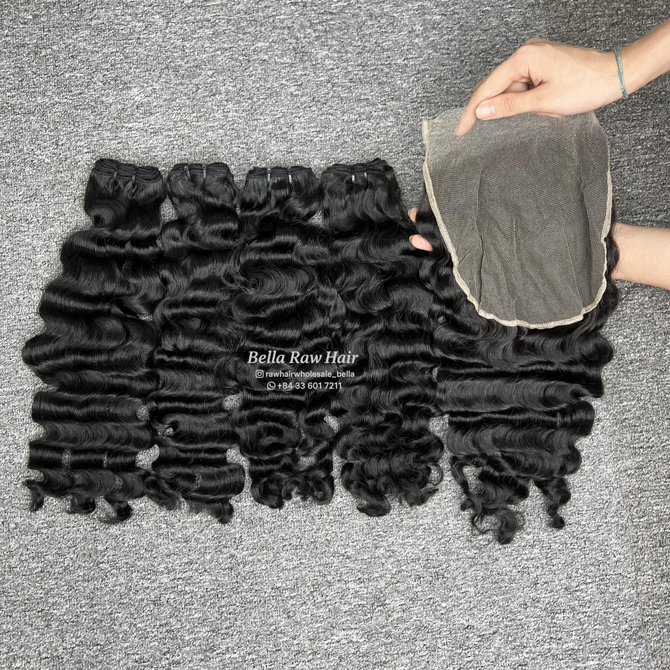 วิกผมแท้แบบไม่เรมี่เวียดนามเครื่องต่อผมมนุษย์ทำจากผมลอนลึกผมต่อผมแบบคู่